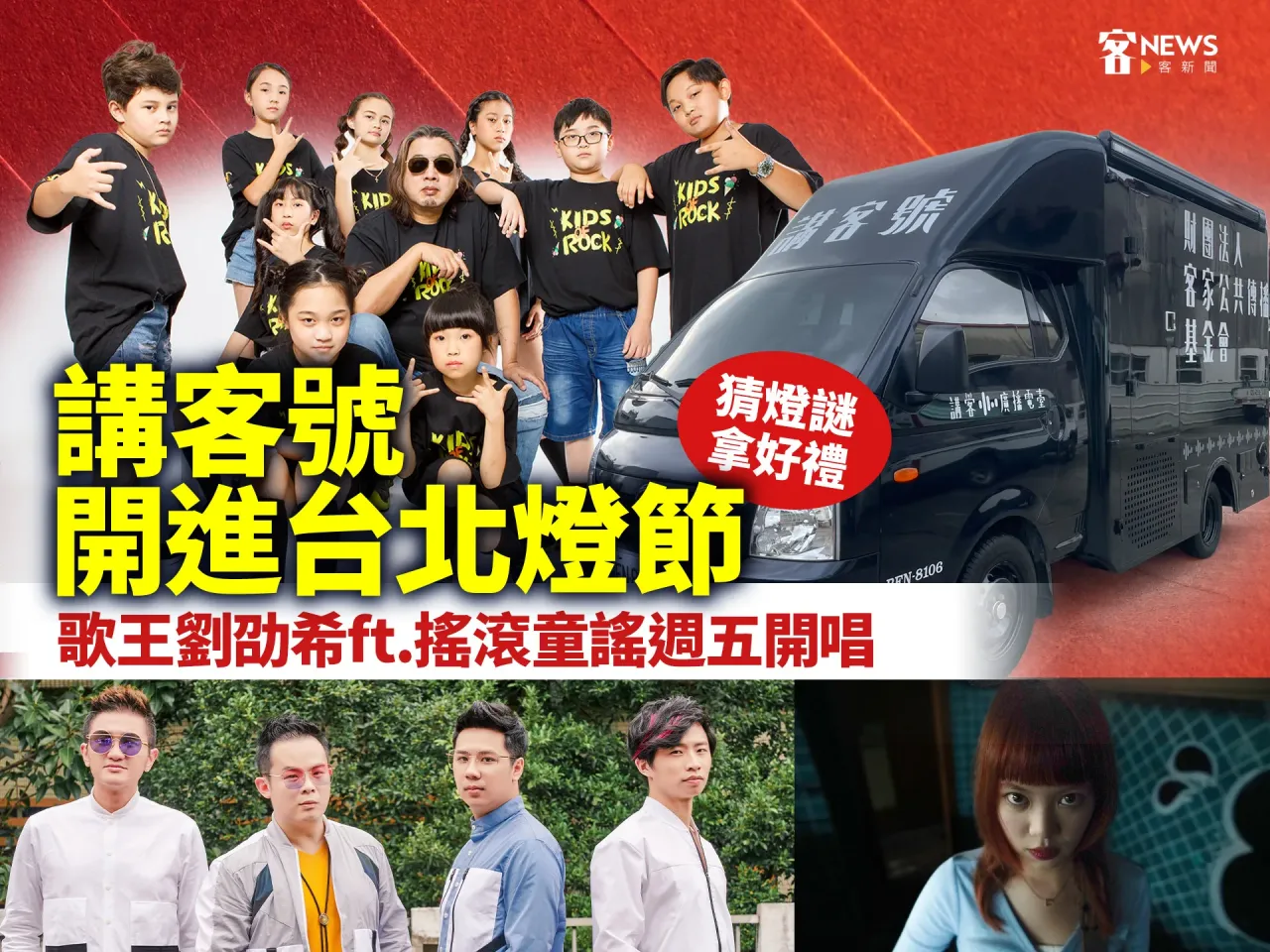 【李台源/綜合報導】「2026台北燈節」活動昨晚正式在花博展區與西門展區登場,講客廣播電臺獲得金鐘肯定的5G行動直播車「講客號」,明(27)天將搶先與雙金歌王劉劭希領銜的「搖滾童謠」、iColor愛客樂、ANA張慶琳登上花博展區主舞台,用最震撼的客語流行音樂及適合親子同樂的猜燈謎與大家渡過正月半(四縣腔:zangˊ ngied ban,元宵節)週末。